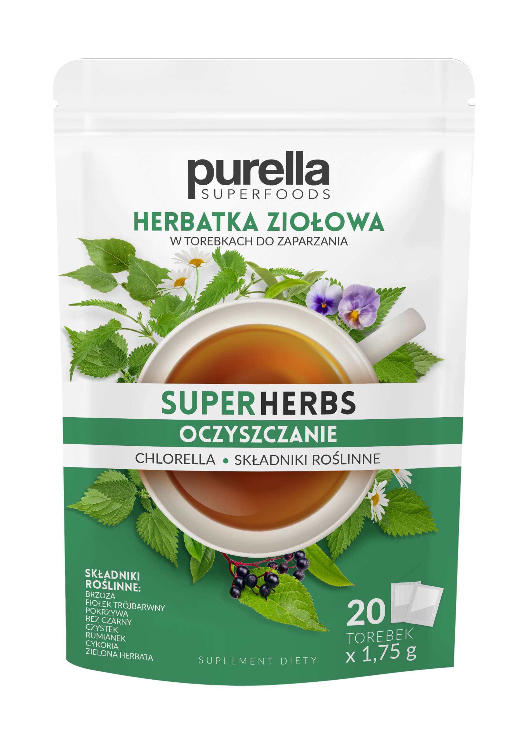 Purella Superfoods Superherbs Herbatka ziołowa Oczyszczenie 20 torebek